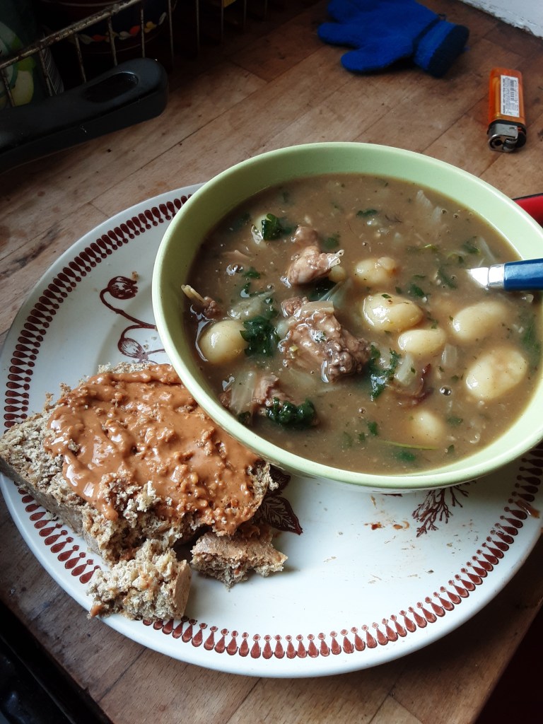 After about 20 mins it was ready, and I added gnocchi, a pinch of gravy granules and pepper. The guy on the video used a slow cooker, but he didn’t have a 5 year old lad yelling for his supper a foot away.