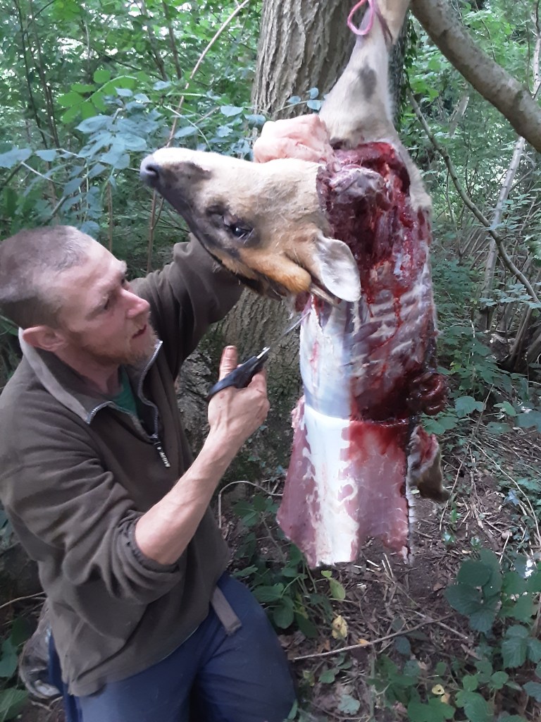 I had never prepared such a large animal before ( though have worked my way through wood pigeon, squirrel, pheasant and rabbit) and was glad of the help of a friend at the farm!