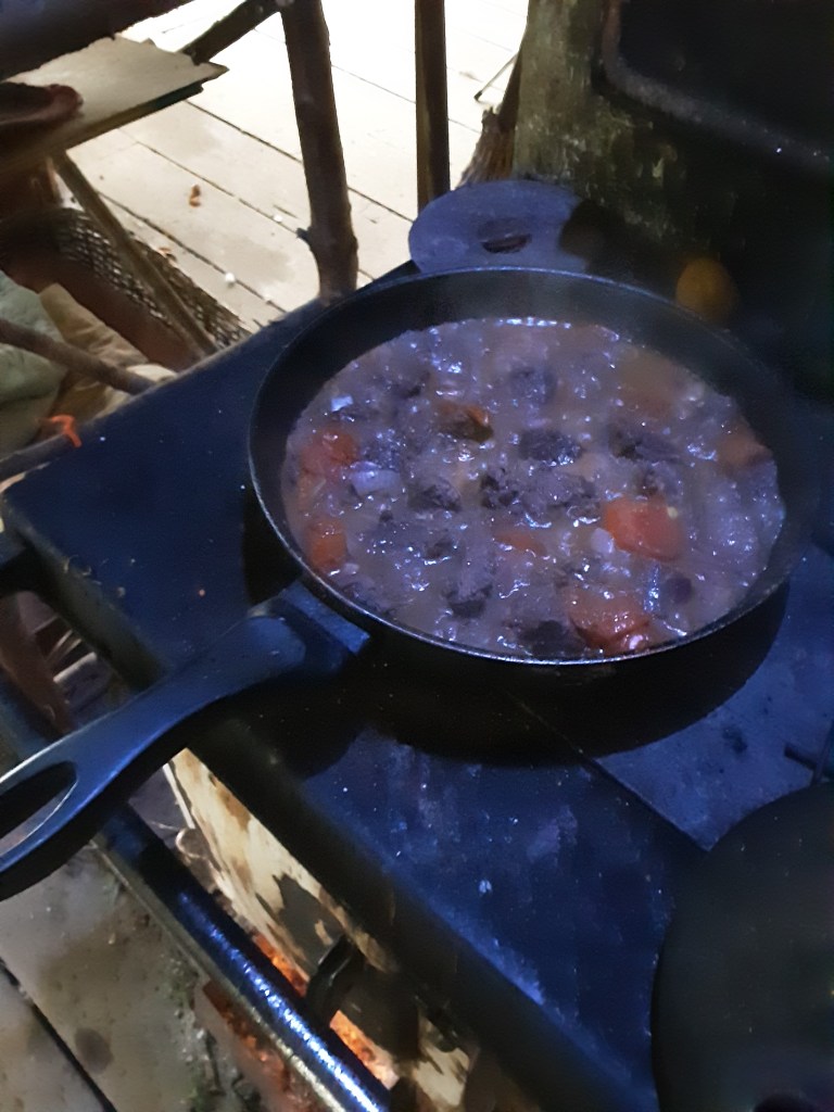 Andy made a delicious fried-sauteed thingy from the backstrap cut, we had it with homemade rosemary flatbread and greens soup. Totally delicious 😄 and worth all the hard work.