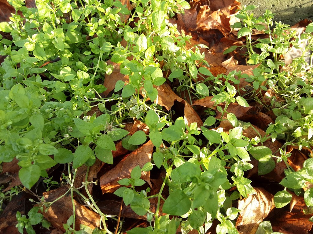 I’m still finding Chickweed, or Stellaria media, at the top of the Canal bridge in window boxes and in cracks along paths. This delicious salad leaf is sweet, tender and full of much needed Vitamin C. Cleavers, Galium aperine, is still poking up tender shoots which help cleanse the blood and kidneys of toxins – just what the doctor ordered after Christmas indulgence!