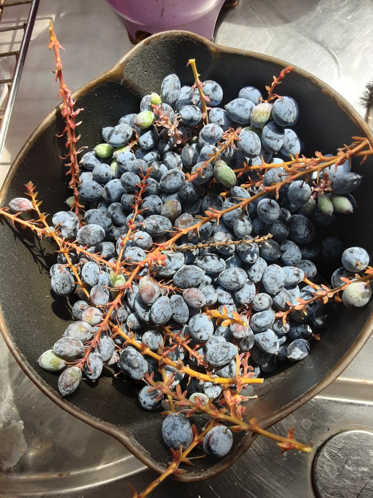 Interestingly enough, there are divided opinions on the edibility of the berries. Healthline.com states that the berberine they contain is helpful in the oral treatment of IBS and other gut inflammation, and they have been used in TCM (Traditional Chinese Medicine) for centuries to treat psoriasis, stomach issues, heartburn and depression. However, some sources claim the berberine is harmful. I had a look at some studies by scientists at http://www.frontersin.org, in a paper titled ‘Toxicological Effects of Berberine and Sanguinarine’ they state that low doses berberine encourages the growth of cancer cells, whilst in higher doses it acts to slow their growth! Confusing or what! The same scientists also tell us berberine is antimicrobial, antioxidant and anti-inflammatory. Compounds in Oregon grape are shown to inhibit the growth of bacteria and fungi. You can buy all sorts of herbal supplements containing berberine, so in my humble opinion sticking a far more dilute version (I.e. fruit) in some booze or syrup and drinking it very occasionally is pretty safe.