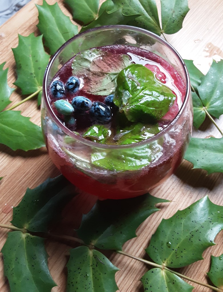 - Garnish with a sprig of mahonia berries, slice of lime and a mahonia leaf sprig. Enjoy!