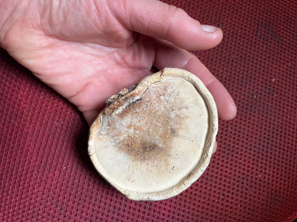 It’s not poisonous, but it won’t win you any prizes in Masterchef. This is another fungus that was used to hold a coal. It would then be wrapped in slightly damp moss and leaves and carried, ready to relight the cook fire when a prehistoric tribe was on the move.