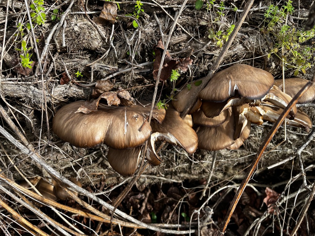 Fried up these Oyster mushrooms I found growing on a felled poplar at Tiddenfoot Lake. At the end of January! It just goes to show that you can find tasty edible mushrooms year-round.