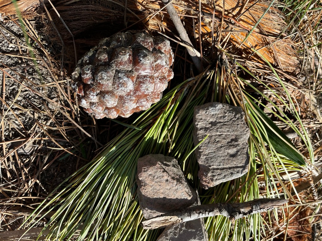 Japanese soldiers on the run in WW2 survived for years on pine nuts, mushrooms and whatever else they could find in their local forest. I managed to winkle out three Stone Pine seeds for planting later.