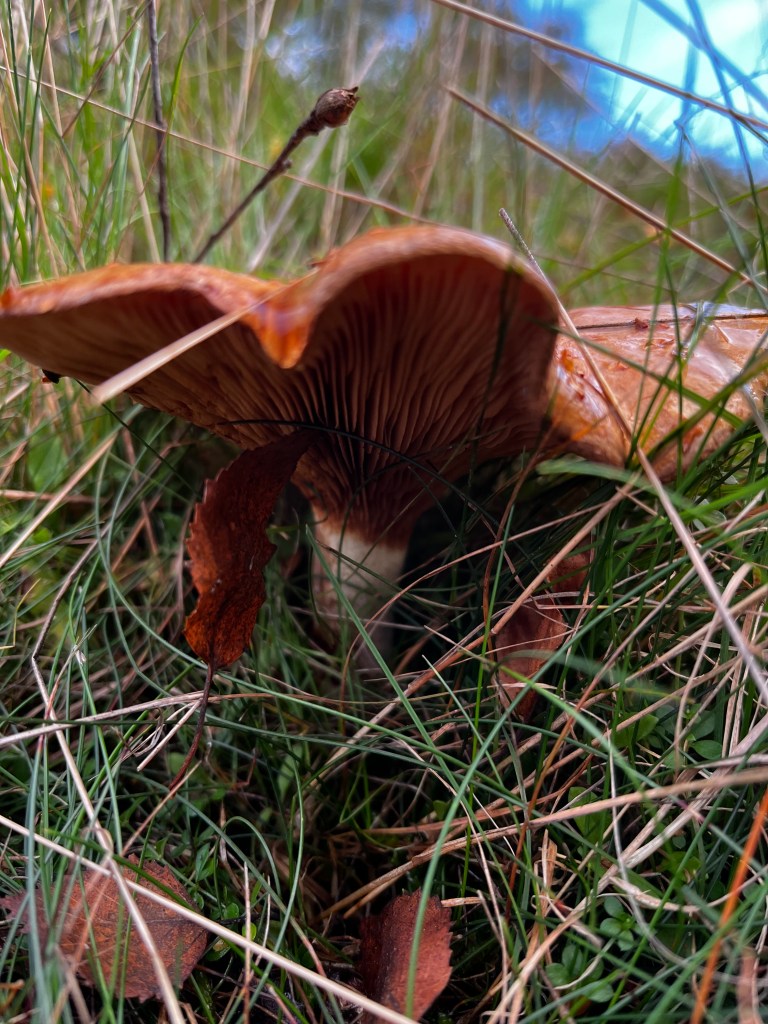 I found some big, old Wood Blewits under Beech in Plantation wood. It’s very important to note under which trees or grasses you found your fungus. Species of fungi are symbiotic or parasitic on particular trees/grasses, and it can really help you avoid misidentification.