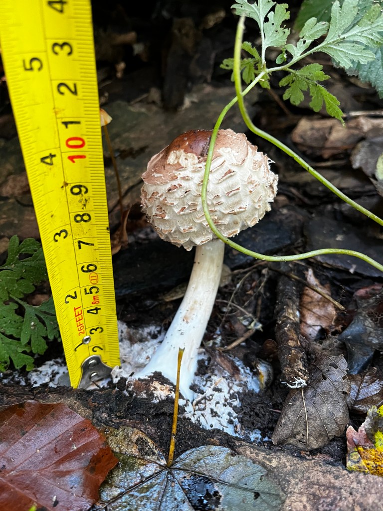 Below is Shaggy Parasol (Macrolepiota rhacodes). I’ve always eaten these and found them delicious and nutty fried on toast. Some literature says they can take up toxins if they are growing in nitrate rich areas. Use your judgement.