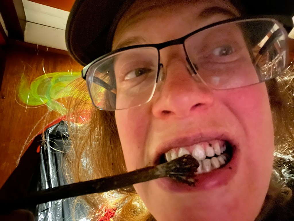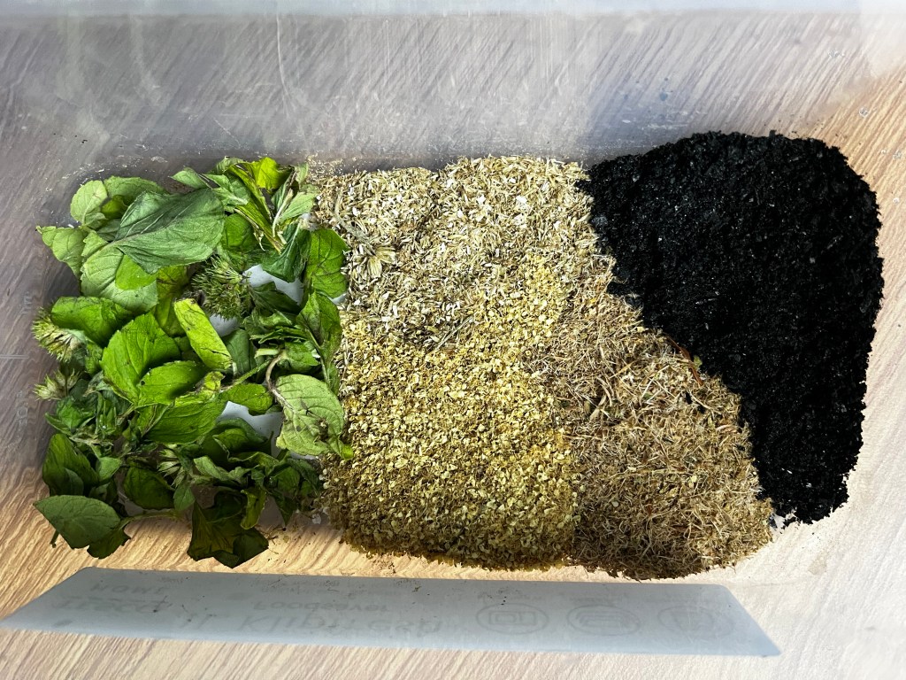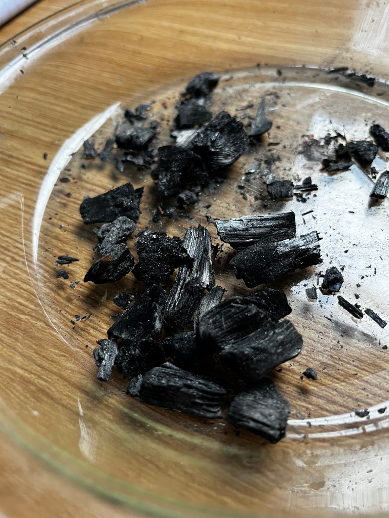 I mixed small amounts with water, experimenting with various ratios of charcoal and herbs. The next improvement will be to find a binding agent that gives it a paste like feel. Though this is not necessary for clean teeth!