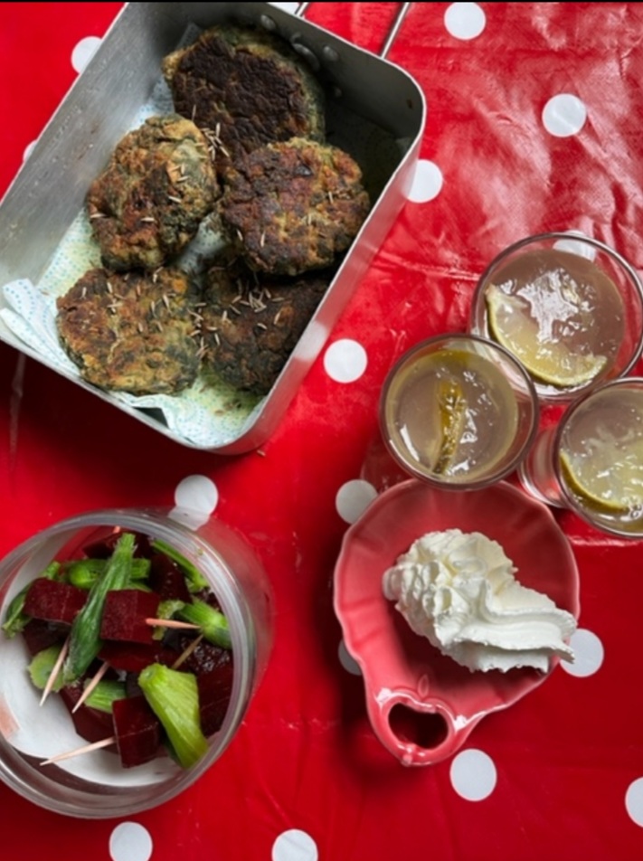 I changed the tapas menu for Sat : this June we sampled Steamed Hogweed Flower Beetroot Club Sticks, Estonian Potato Nettle Cakes and Elderflower Jelly with Lime & Cream.