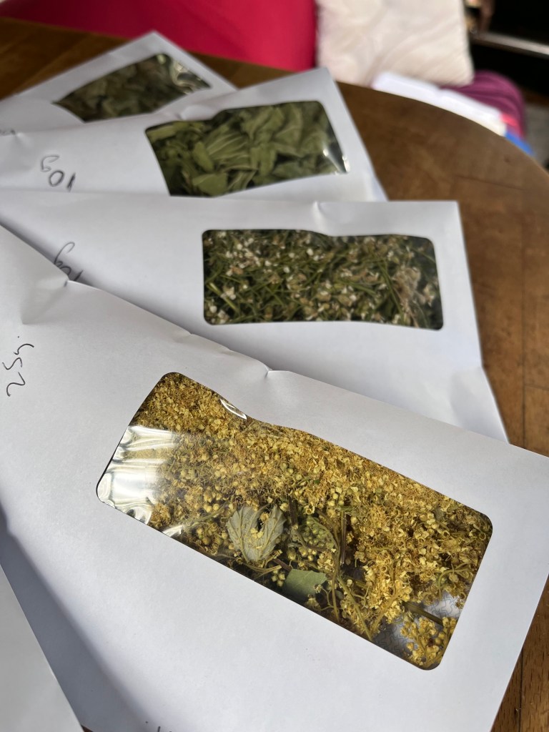 Last but not least, these summer months are the time for me to go out whenever it’s dry (but not incinerator hot, mid-morning is best) and pick medicinal leaves and flowers.