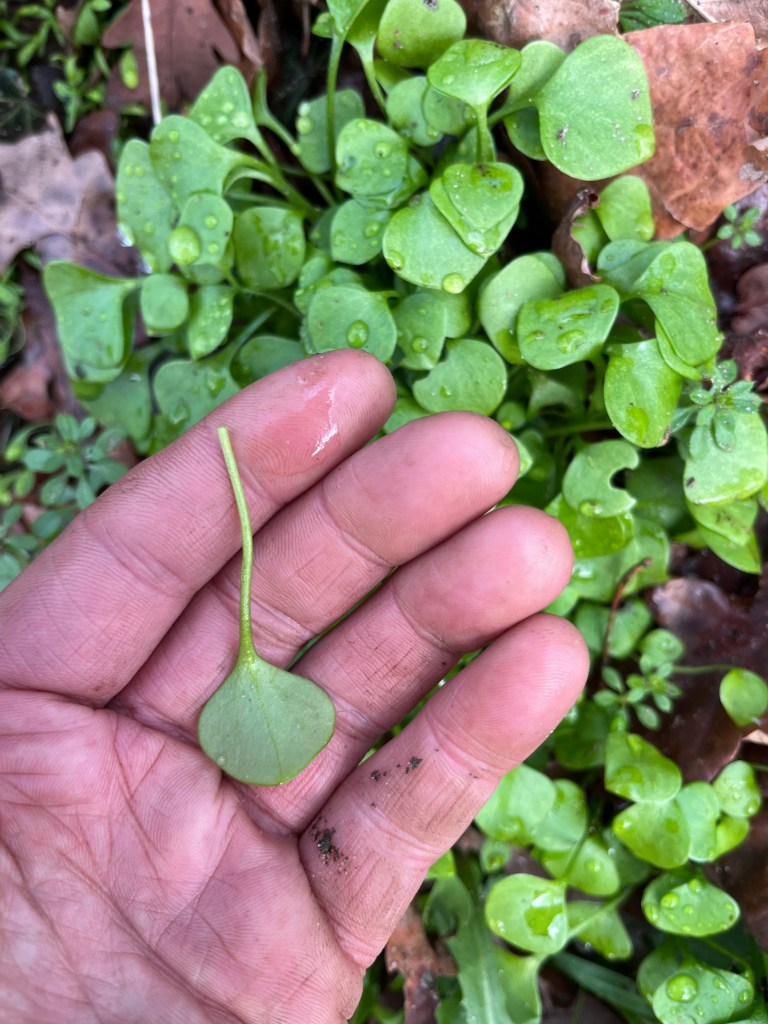 There’s still a fair bit of wild greens to choose from due to mild weather. Chickweed (Stellaria media), Cleavers (Galium aperine, and a good crop of Winter Lamb’s lettuce (Claytonia perfoliata).