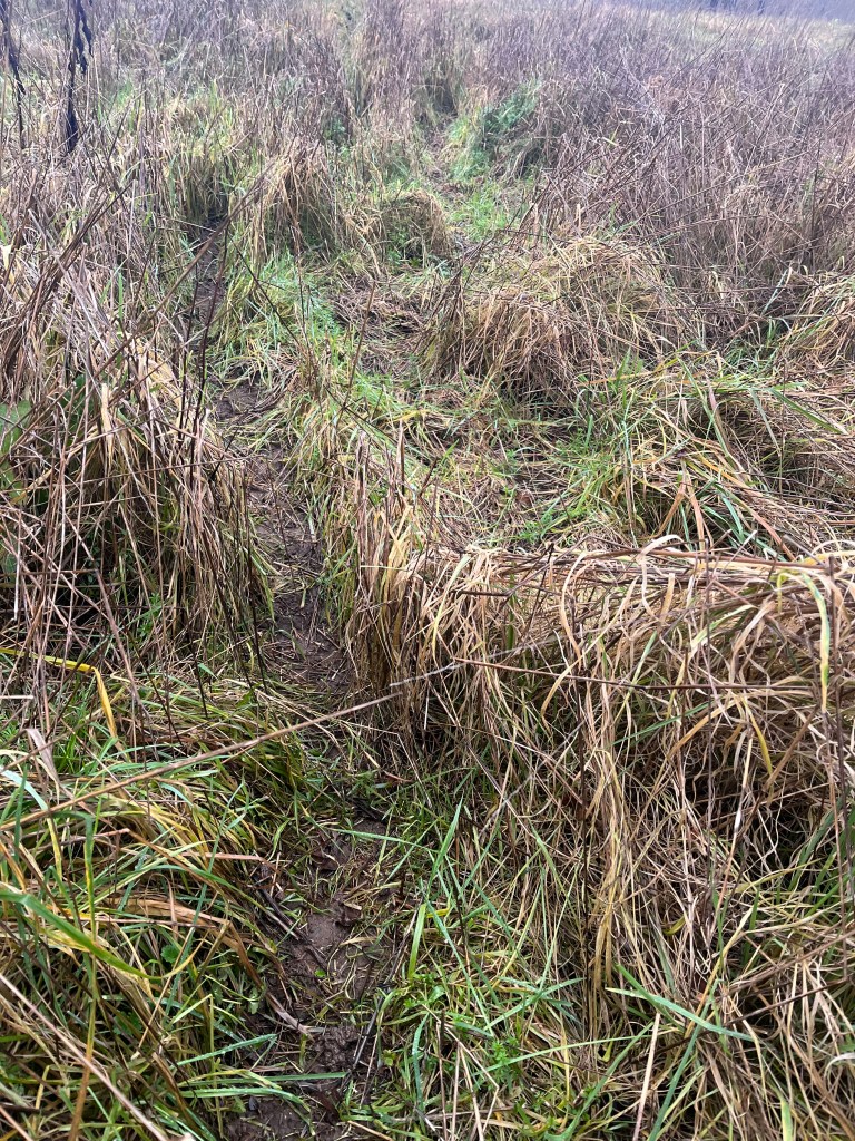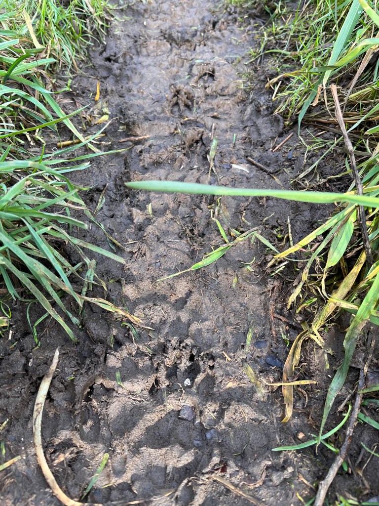 I started off in a big meadow, scanning rabbit runs. Obviously, lots of different dog tracks too. Dogs have many types of feet (cat, oval, hare feet…etc!) so it’s vital to be able to tell them apart from anything wilder.