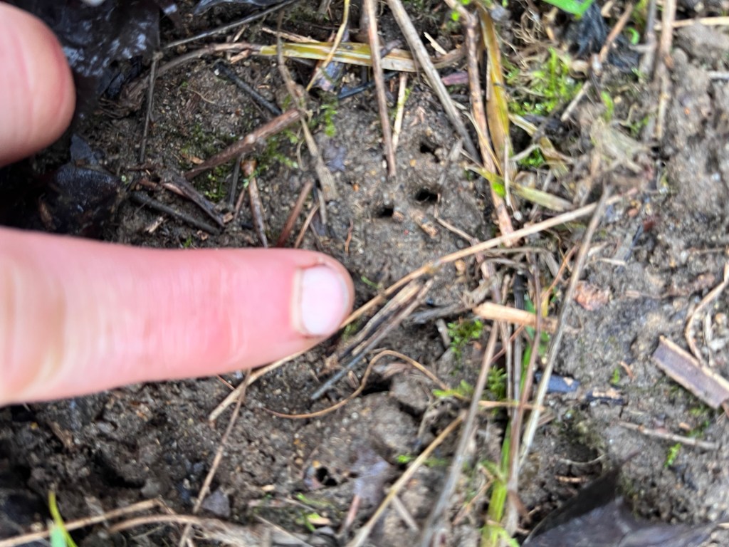 I hunted about for tracks by the water’s edge, as animals need water just like we do. I scored big with this amazing badger track. I thought they hibernated all winter, but actually, no, they don’t. They just sleep a lot more (called ‘torpor’) and come out when the weather is mild to forage.