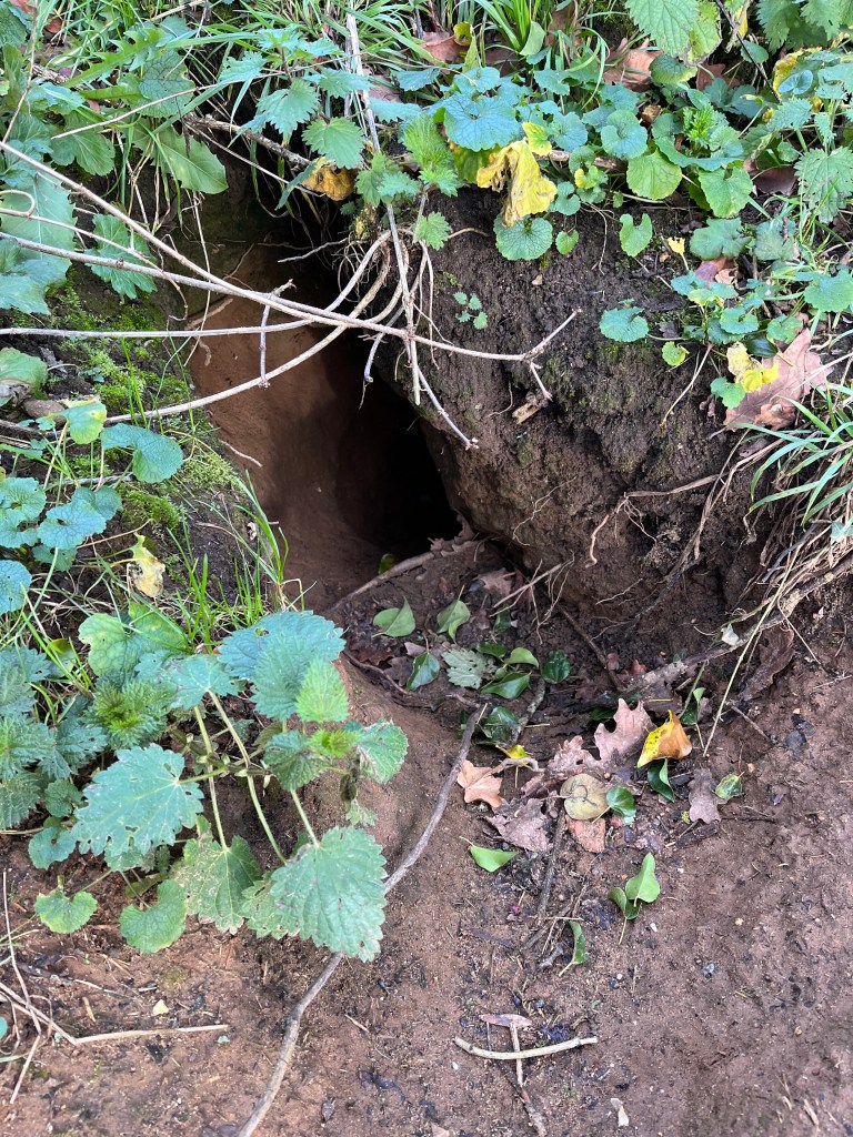 On the way back, we found a fox-hole. Well actually, I crawled though some bushes in front of perplexed onlookers and found a fox-hole, whilst my son waited disdainfully on the path further down. I’ve been told it is a fox-hole by a retired paratrooper friend of mine. I haven’t seen a fox come out of it so can’t confirm.