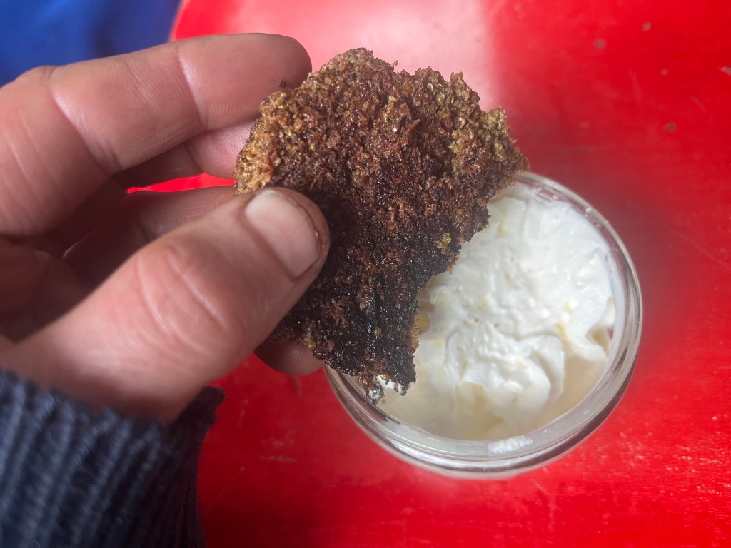 I couldn’t resist adding a savoury recipe. The crunched-up catkins are just like breadcrumbs, so ideal for rolling fish, wood pigeon or tofu/avocado in. the catkins are very dry on their own, so go well with something moist, yet firm enough not to soak them.